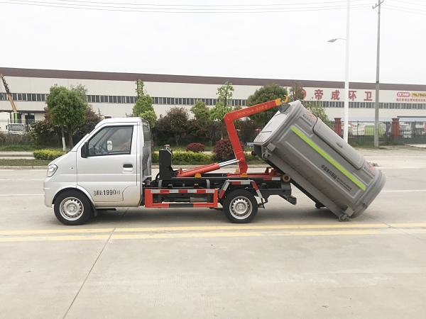 車廂可卸載式垃圾車,又稱勾臂式垃圾車、拉臂式垃圾車。該車廣泛適用與城市街道學校垃圾處理,可一車配備多個斗,各個垃圾點放置多個,帶自卸功能,液壓操作,方便傾倒。在平日里可將車載垃圾箱放置到各個垃圾收集站,待垃圾收集滿后,該車可直接開赴至垃圾站,通過液壓系統(tǒng)的操控,可將垃圾車后座上加裝的勾臂放下,掛住站內(nèi)垃圾箱前端的連接點,將垃圾箱拉至車體的后座上,此時即可啟動車輛,將垃圾運送至垃圾處理站內(nèi),進行自卸式傾倒。該車主要的優(yōu)點就是可一車配多斗,一輛車就可以維持數(shù)個垃圾收集站的運轉,效率高,且箱體為密封式設計,不會造成二次污染。