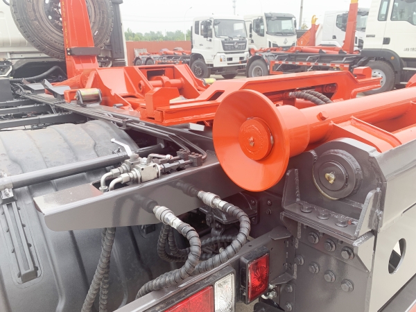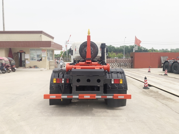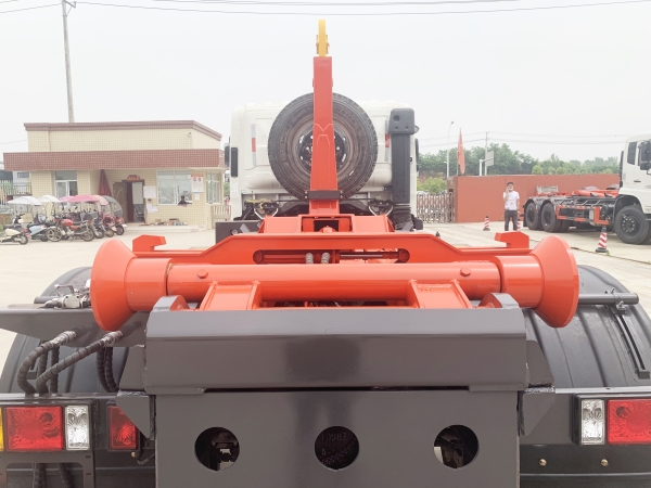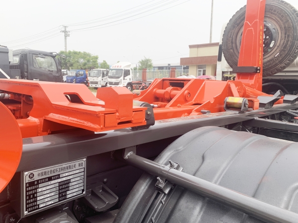 車廂可卸載式垃圾車,又稱勾臂式垃圾車、拉臂式垃圾車。該車廣泛適用與城市街道學校垃圾處理,可一車配備多個斗,各個垃圾點放置多個,帶自卸功能,液壓操作,方便傾倒。在平日里可將車載垃圾箱放置到各個垃圾收集站,待垃圾收集滿后,該車可直接開赴至垃圾站,通過液壓系統的操控,可將垃圾車后座上加裝的勾臂放下,掛住站內垃圾箱前端的連接點,將垃圾箱拉至車體的后座上,此時即可啟動車輛,將垃圾運送至垃圾處理站內,進行自卸式傾倒。該車主要的優點就是可一車配多斗,一輛車就可以維持數個垃圾收集站的運轉,效率高,且箱體為密封式設計,不會造成二次污染。