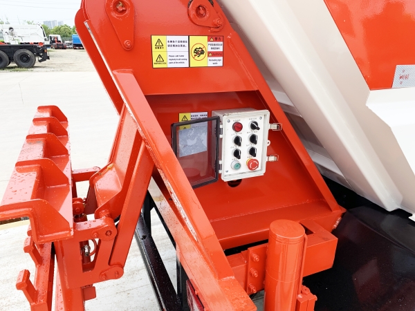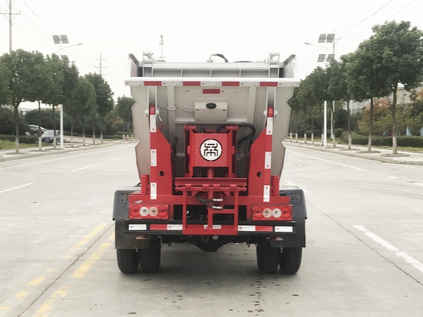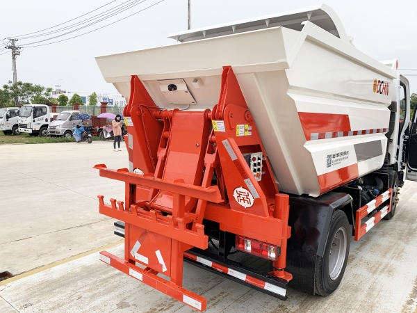 自裝卸式垃圾車在底盤的基礎上,加裝垃圾箱體、連接附件、防護欄及液壓系統等裝置。具有操作安全、使用性能穩定、返修率低、售后服務及時周到等特點。本產品主要用于收集與轉運城市住宅小區、鄉鎮街道等產生的生活垃圾。整車小巧靈活,行動方便,適應人流密集的商業區域和道路交通情況較差的城鄉地區。本車配有后掛桶進料機構,在翻桶處操作,可與120L/240L/660L標準塑料桶對接。整車具有自卸功能,卸料方便。結構結實耐腐 船型箱體結構實現100%無泄漏;刮板進料+壓縮 壓縮效率高;高位舉升自卸結構,卸料干凈 對接方便;多功能翻桶進料機構 進料快捷穩定;液壓系統穩定可靠;自動化程度高,電液聯合控制。