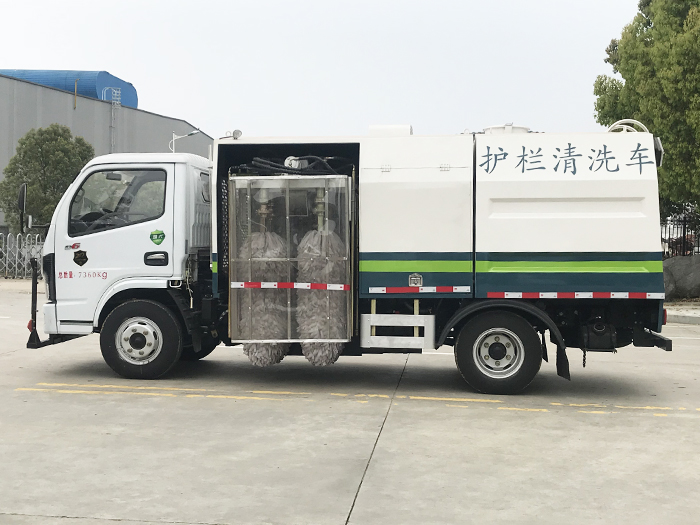 護欄清洗車 護欄清洗車主要用于護欄清洗和城市道路隔離護欄清洗。也可用于清洗工業排液管道、壁面等、市道路隔離護欄、道路兩側墻體的刷洗。產品性能特點說明: 1.雙刷互動作業設計,清洗效率高,作業速度快,每小時3-5km。 2.特殊設計裝置,使清洗刷與護欄板自動保持恒定距離,確保清洗的質量、效率和安全。 3.高壓水流設計,高效節水,每噸水可洗護欄5-8km。 4.獨特的刷毛設計,清洗不留死角,不劃傷漆面。 5、多種汽車底盤的配套安裝,更使客戶增加了價位的選擇空間。 6、使用安全,節能環保,穩定可靠。