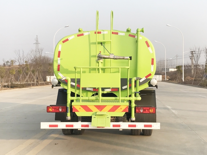 1.該車主要用于城鄉園林綠化噴灑;主要裝置為水罐及泵;運輸介質:水,罐體有效容積10.08立方米;2.選裝不同外形管道,選裝風機樣式,選裝高射炮樣式,選裝后噴霧,選裝左側噴灑,選裝右側噴灑,選裝后平臺護欄樣式,選裝LED箭頭指示燈,選裝圓形輪罩,選裝前置電動高射炮,選裝前置電動高射炮前伸量為550mm,對應長度為:8250mm;3.罐體外形尺寸(長×長軸×短軸)為(mm):(4200×2350×1450,3800×2400×1550);4.側防護,后防護材料為Q235;連接方式:焊接加螺栓連接,后部防護裝置斷面尺寸(寬×高)50×120(mm),后部防護離地高度:450mm.5.裝備ABS,型號/生產廠家:3631010-C2000/東科克諾爾商用車制動系統(十堰)有限公司,ABS-E 4S/4M/生產廠為威伯科汽車系統()有限公司;5.僅采用3950mm軸距.