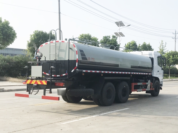 1.該車主要用于城鄉園林綠化灑水;主要專用裝置為噴灑總成;罐體有效容積15.47立方米;2.僅采用4350mm+1350mm軸距.罐體外形尺寸(長×長軸×短軸)為(mm):(6570×2350×1450,6020×2400×1550);3.選裝駕駛室.選裝不同外形管道,選裝風機樣式,選裝高射炮樣式,選裝后噴霧,選裝左側噴灑,選裝右側噴灑,選裝后平臺護欄樣式,選裝LED箭頭指示燈,選裝右側管道;4.側防護,后防護材料為Q235;連接方式:焊接加螺栓連接,后部防護裝置斷面尺寸(寬×高)60×120(mm),后部防護離地高度:490mm;5.ABS型號/生成廠家:3631010-C2000/東科克諾爾商用車制動系統(十堰)有限公司.
