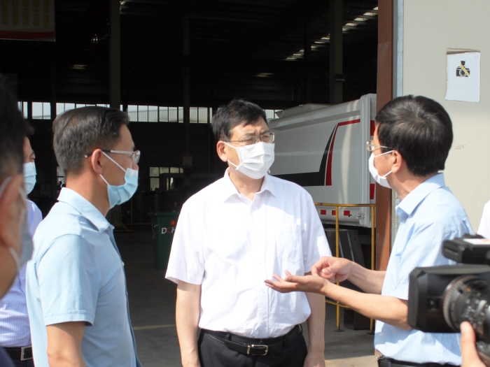 2020年5月26日上午9點,隨州市市委書記陳瑞峰、市林常倫、劉宏業(yè),在市、市經(jīng)信局、市政務(wù)服務(wù)和大數(shù)據(jù)局主要負責同志的陪同下蒞臨湖北帝成環(huán)衛(wèi)科技有限公司參觀視察,調(diào)研全市優(yōu)化營商環(huán)境工作及疫后復工復產(chǎn)工作情況。