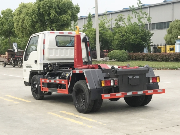 車廂可卸載式垃圾車,又稱勾臂式垃圾車、拉臂式垃圾車。該車廣泛適用與城市街道學(xué)校垃圾處理,可一車配備多個斗,各個垃圾點放置多個,帶自卸功能,液壓操作,方便傾倒。在平日里可將車載垃圾箱放置到各個垃圾收集站,待垃圾收集滿后,該車可直接開赴至垃圾站,通過液壓系統(tǒng)的操控,可將垃圾車后座上加裝的勾臂放下,掛住站內(nèi)垃圾箱前端的連接點,將垃圾箱拉至車體的后座上,此時即可啟動車輛,將垃圾運送至垃圾處理站內(nèi),進(jìn)行自卸式傾倒。該車主要的優(yōu)點就是可一車配多斗,一輛車就可以維持?jǐn)?shù)個垃圾收集站的運轉(zhuǎn),效率高,且箱體為密封式設(shè)計,不會造成二次污染。