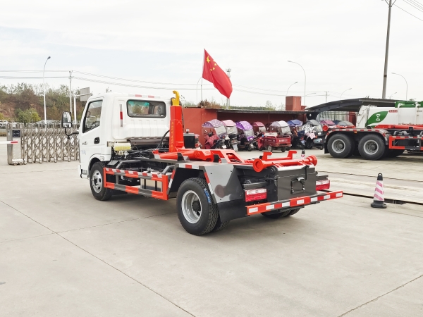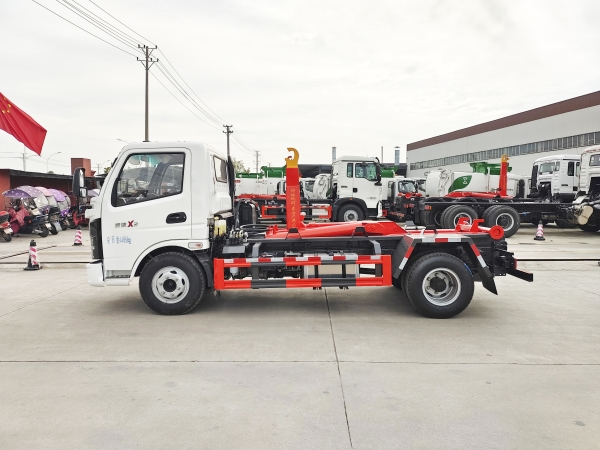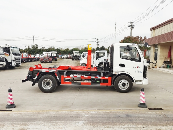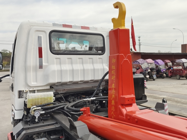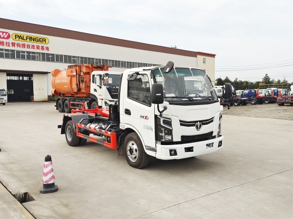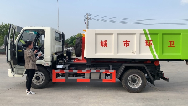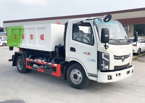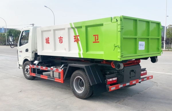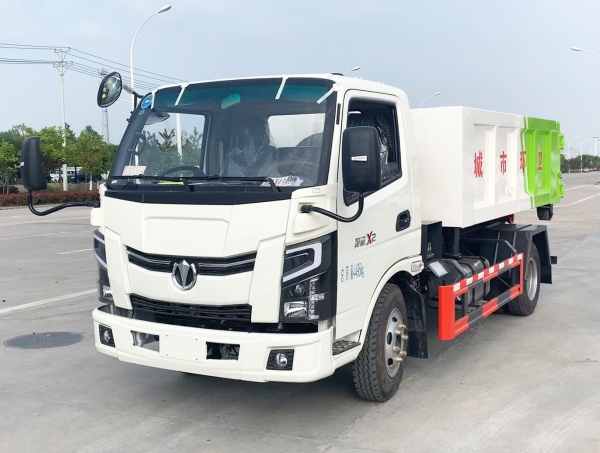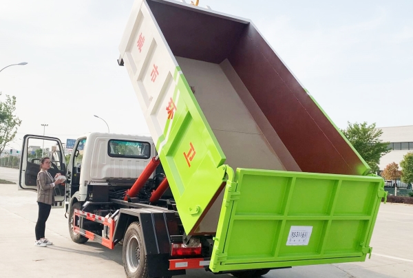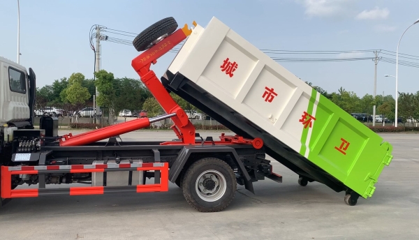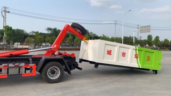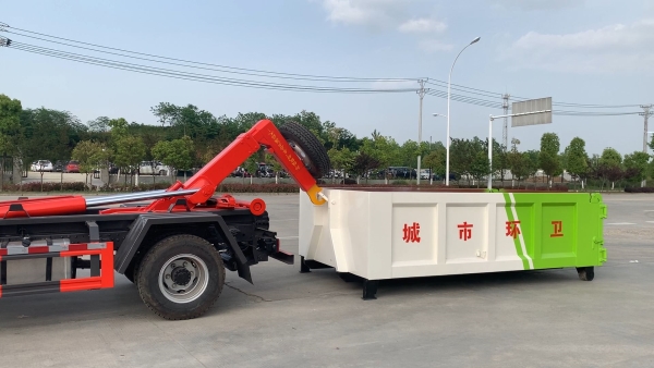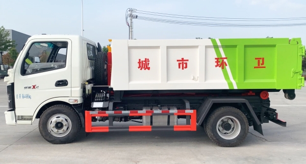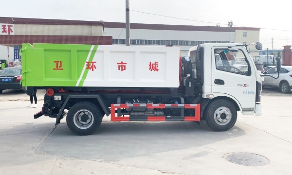 車廂可卸載式垃圾車,又稱勾臂式垃圾車、拉臂式垃圾車。該車廣泛適用與城市街道學(xué)校垃圾處理,可一車配備多個斗,各個垃圾點放置多個,帶自卸功能,液壓操作,方便傾倒。在平日里可將車載垃圾箱放置到各個垃圾收集站,待垃圾收集滿后,該車可直接開赴至垃圾站,通過液壓系統(tǒng)的操控,可將垃圾車后座上加裝的勾臂放下,掛住站內(nèi)垃圾箱前端的連接點,將垃圾箱拉至車體的后座上,此時即可啟動車輛,將垃圾運(yùn)送至垃圾處理站內(nèi),進(jìn)行自卸式傾倒。該車主要的優(yōu)點就是可一車配多斗,一輛車就可以維持?jǐn)?shù)個垃圾收集站的運(yùn)轉(zhuǎn),效率高,且箱體為密封式設(shè)計,不會造成二次污染。