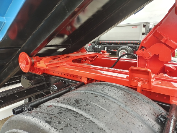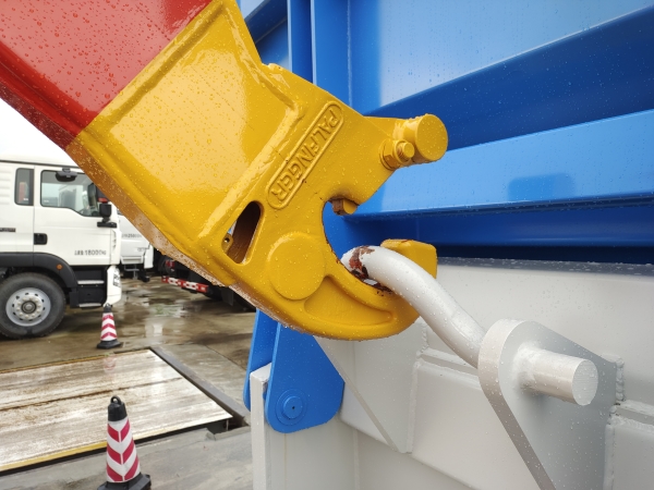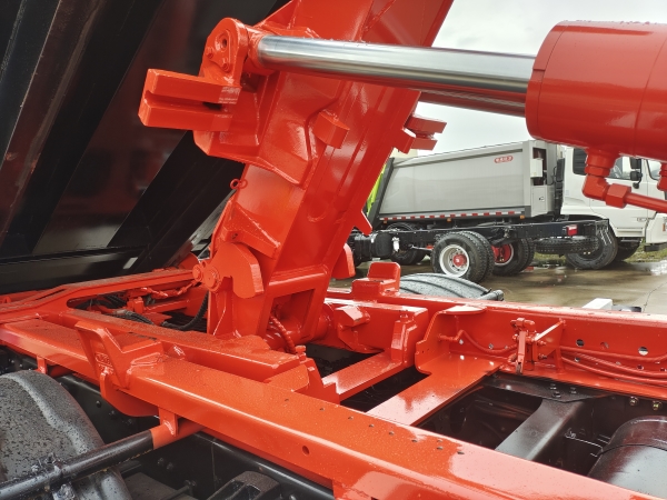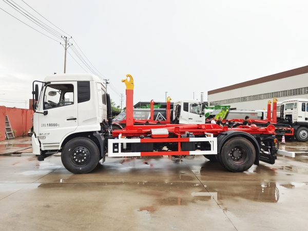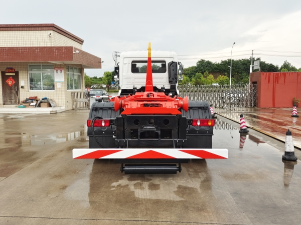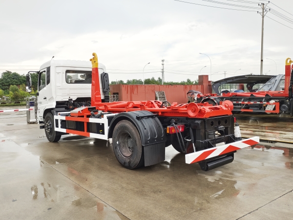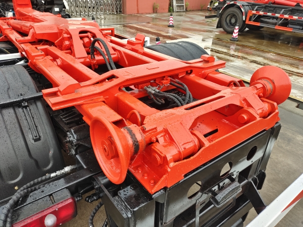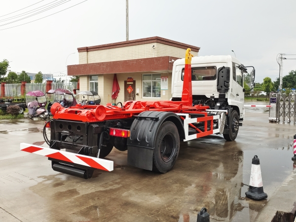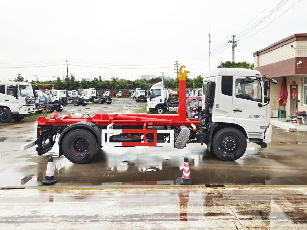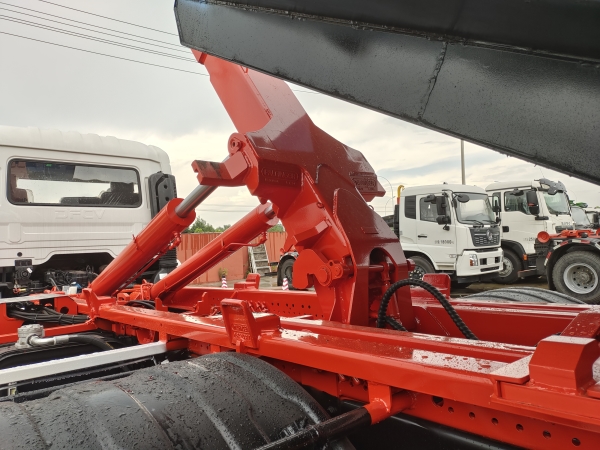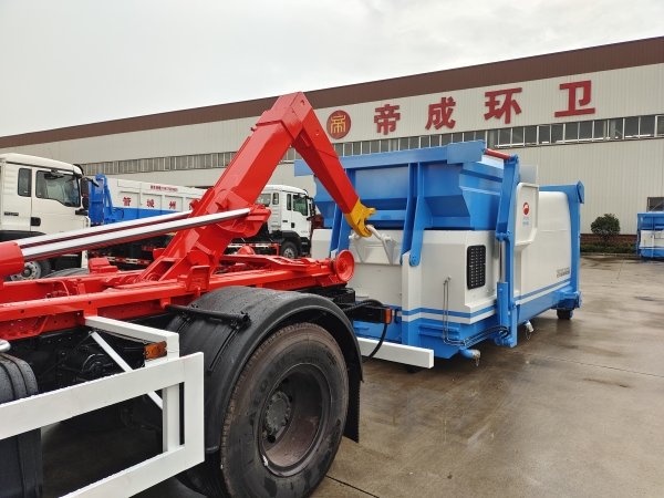 車廂可卸載式垃圾車,又稱勾臂式垃圾車、拉臂式垃圾車。該車廣泛適用與城市街道學校垃圾處理,可一車配備多個斗,各個垃圾點放置多個,帶自卸功能,液壓操作,方便傾倒。在平日里可將車載垃圾箱放置到各個垃圾收集站,待垃圾收集滿后,該車可直接開赴至垃圾站,通過液壓系統的操控,可將垃圾車后座上加裝的勾臂放下,掛住站內垃圾箱前端的連接點,將垃圾箱拉至車體的后座上,此時即可啟動車輛,將垃圾運送至垃圾處理站內,進行自卸式傾倒。該車主要的優點就是可一車配多斗,一輛車就可以維持數個垃圾收集站的運轉,效率高,且箱體為密封式設計,不會造成二次污染。