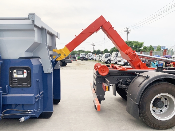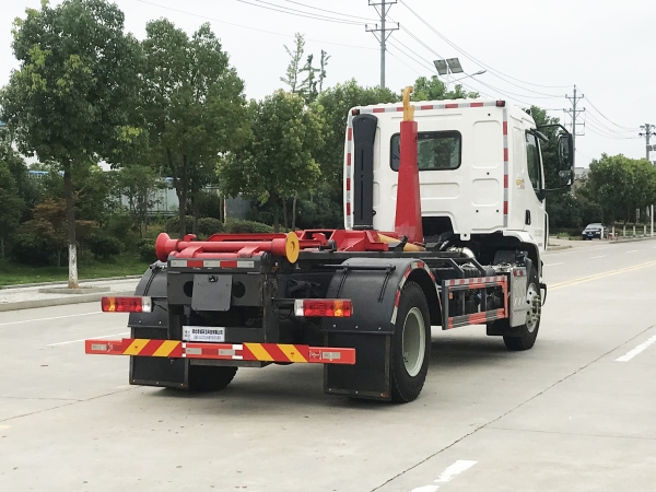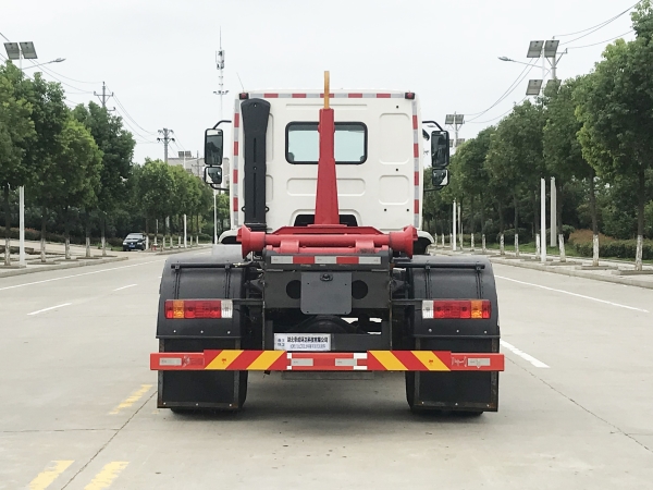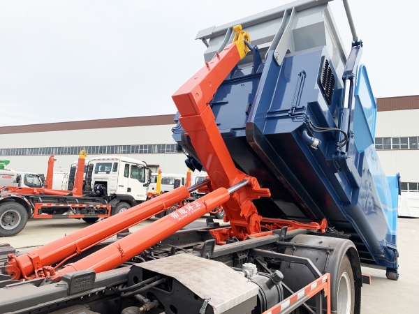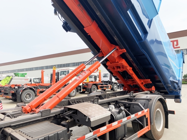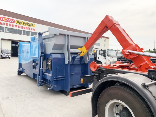 車廂可卸載式垃圾車,又稱勾臂式垃圾車、拉臂式垃圾車。該車廣泛適用與城市街道學(xué)校垃圾處理,可一車配備多個斗,各個垃圾點放置多個,帶自卸功能,液壓操作,方便傾倒。在平日里可將車載垃圾箱放置到各個垃圾收集站,待垃圾收集滿后,該車可直接開赴至垃圾站,通過液壓系統(tǒng)的操控,可將垃圾車后座上加裝的勾臂放下,掛住站內(nèi)垃圾箱前端的連接點,將垃圾箱拉至車體的后座上,此時即可啟動車輛,將垃圾運送至垃圾處理站內(nèi),進行自卸式傾倒。該車主要的優(yōu)點就是可一車配多斗,一輛車就可以維持數(shù)個垃圾收集站的運轉(zhuǎn),效率高,且箱體為密封式設(shè)計,不會造成二次污染。