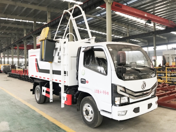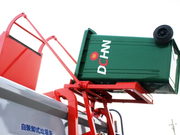 自裝卸式垃圾車是收集、中轉清理運輸垃圾,避免二次污染的新型環衛車輛,其主要特點是垃圾收集方式簡便、高效、環保性好,整車利用效率高,廣泛適用于環衛、市政、物業小區、垃圾多而集中的居民區、城市街道垃圾處理,均具有密封自卸功能,液壓操作,傾卸垃圾方便。 在底盤的基礎上,加裝垃圾箱體、連接附件、防護欄及液壓系統等裝置。具有操作安全、使用性能穩定、返修率低、售后服務及時周到等特點。本產品主要用于收集與轉運城市住宅小區、鄉鎮街道等產生的生活垃圾。整車小巧靈活,行動方便,適應人流密集的商業區域和道路交通情況較差的城鄉地區。本車配有側掛桶進料機構,在翻桶處操作,可與120L/240L標準塑料桶對接。整車具有自卸功能,卸料方便。