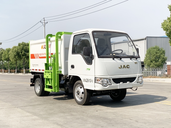 自裝卸式垃圾車是收集、中轉(zhuǎn)清理運(yùn)輸垃圾,避免二次污染的新型環(huán)衛(wèi)車輛,其主要特點(diǎn)是垃圾收集方式簡便、高效、環(huán)保性好,整車?yán)眯矢撸瑥V泛適用于環(huán)衛(wèi)、市政、物業(yè)小區(qū)、垃圾多而集中的居民區(qū)、城市街道垃圾處理,均具有密封自卸功能,液壓操作,傾卸垃圾方便。 在底盤的基礎(chǔ)上,加裝垃圾箱體、連接附件、防護(hù)欄及液壓系統(tǒng)等裝置。具有操作安全、使用性能穩(wěn)定、返修率低、售后服務(wù)及時(shí)周到等特點(diǎn)。本產(chǎn)品主要用于收集與轉(zhuǎn)運(yùn)城市住宅小區(qū)、鄉(xiāng)鎮(zhèn)街道等產(chǎn)生的生活垃圾。整車小巧靈活,行動(dòng)方便,適應(yīng)人流密集的商業(yè)區(qū)域和道路交通情況較差的城鄉(xiāng)地區(qū)。本車配有側(cè)掛桶進(jìn)料機(jī)構(gòu),在翻桶處操作,可與120L/240L標(biāo)準(zhǔn)塑料桶對(duì)接。整車具有自卸功能,卸料方便。